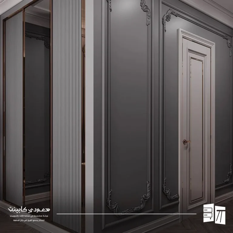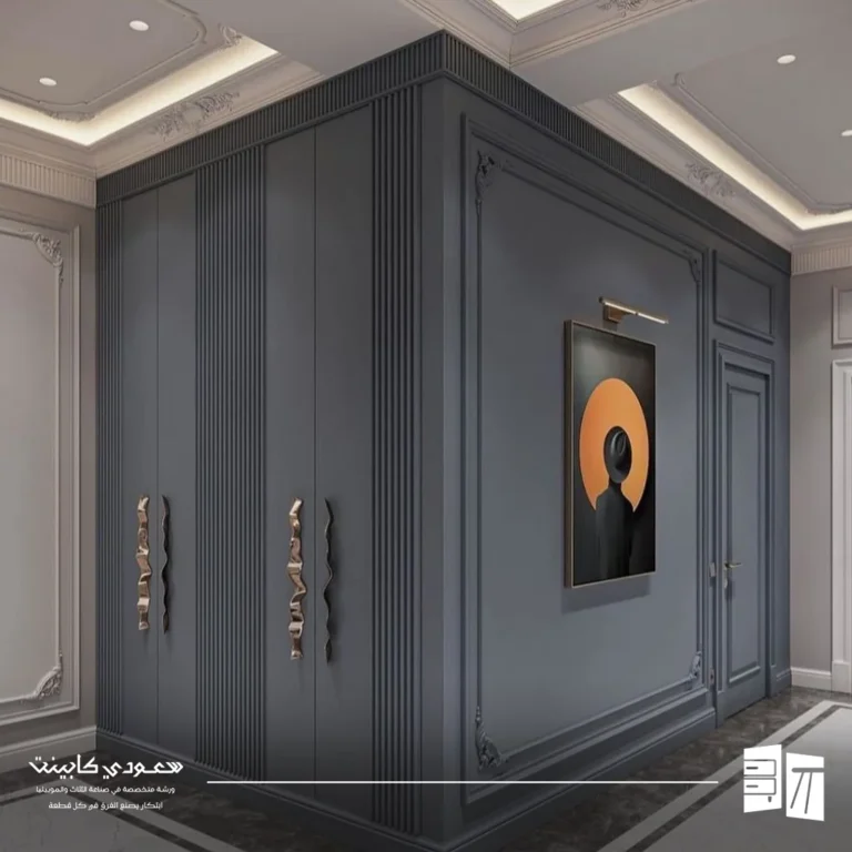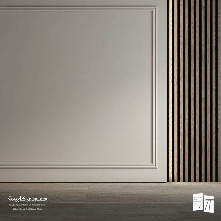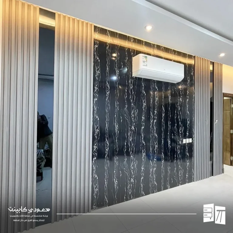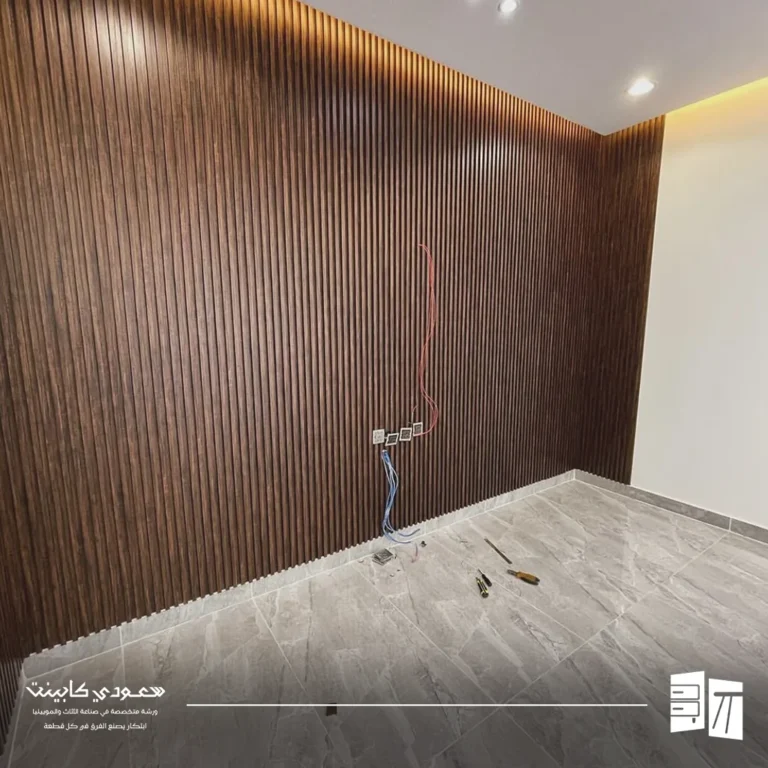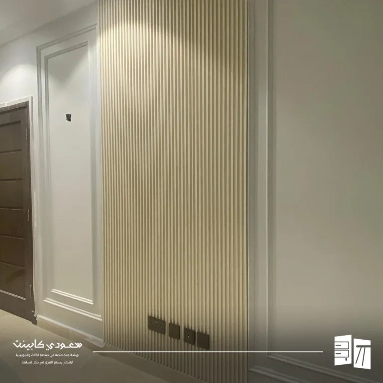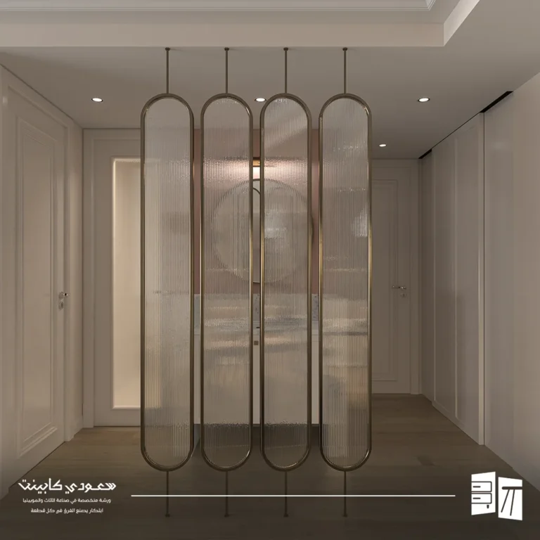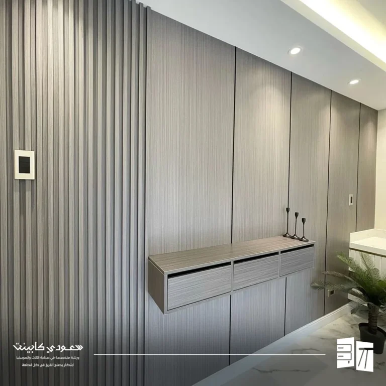- التصنيع والتفصيل الدقيق: بعد اعتماد التصميم النهائي، نبدأ في مرحلة التصنيع لـ تفصيل كابينت استقبال الرياض أو أي أثاث مخصص بأعلى معايير الجودة.
