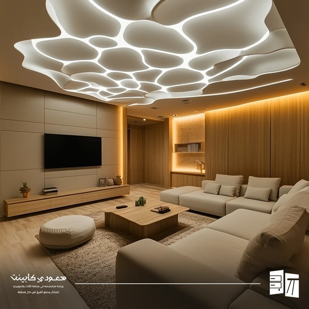 في سعودي كابينت، نولي اهتماماً خاصاً لتخطيط الإضاءة، سواء كانت طبيعية أو صناعية، ونستخدم تقنيات الإضاءة المخفية، المباشرة، وغير المباشرة لخلق جو ساحر. أما الألوان، فنختارها بعناية فائقة لتتناغم مع الأثاث والمواد، ولتعكس الهوية اللي تبغاها لاستقبالك.