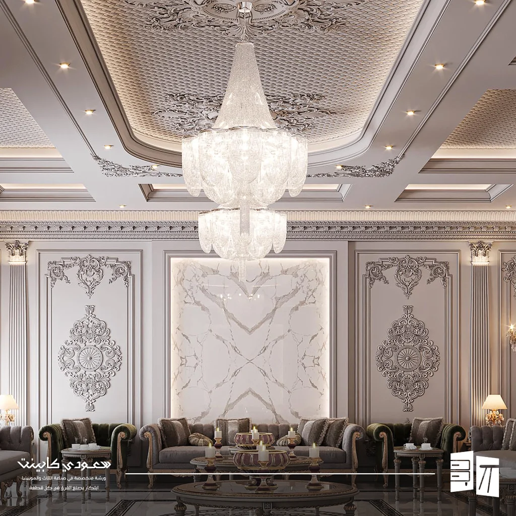 - حلول متكاملة: من التصميم الأولي حتى التركيب النهائي لـ ديكورات استقبال الرياض.